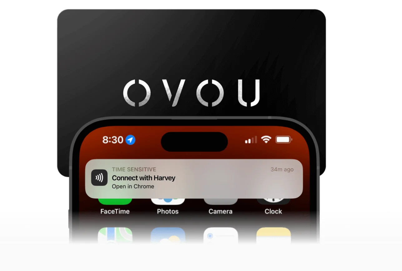 Les iPhones fabriqués en 2018 ou plus récents ont un NFC intégré et sont activés par défaut. Il suffit de taper ou de faire glisser votre carte près de la caméra pour partager votre profil.