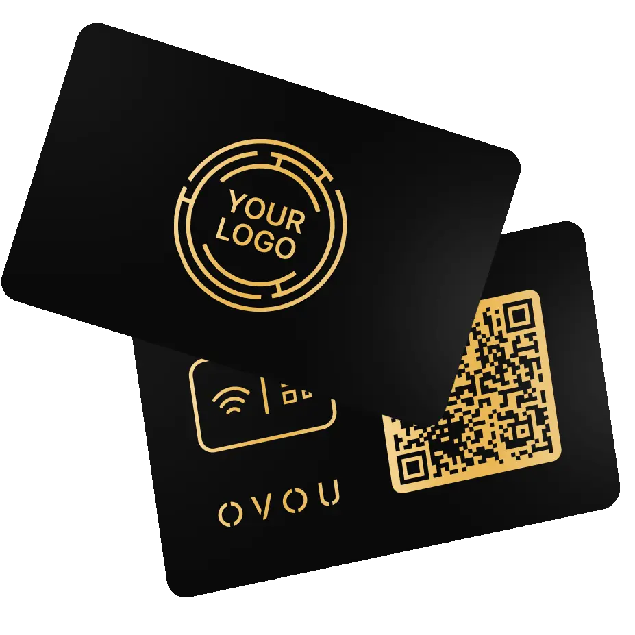 Notre carte standard est fabriquée à partir d'un mélange de haute qualité PVC/PET (similaire aux cartes de crédit premium). Finie en noir mat ou blanc mat avec une impression en foil argent ou or. Vous pouvez également personnaliser votre carte en utilisant l'impression UV, ce qui donne un toucher rugueux à votre logo.